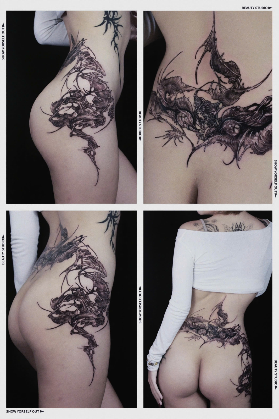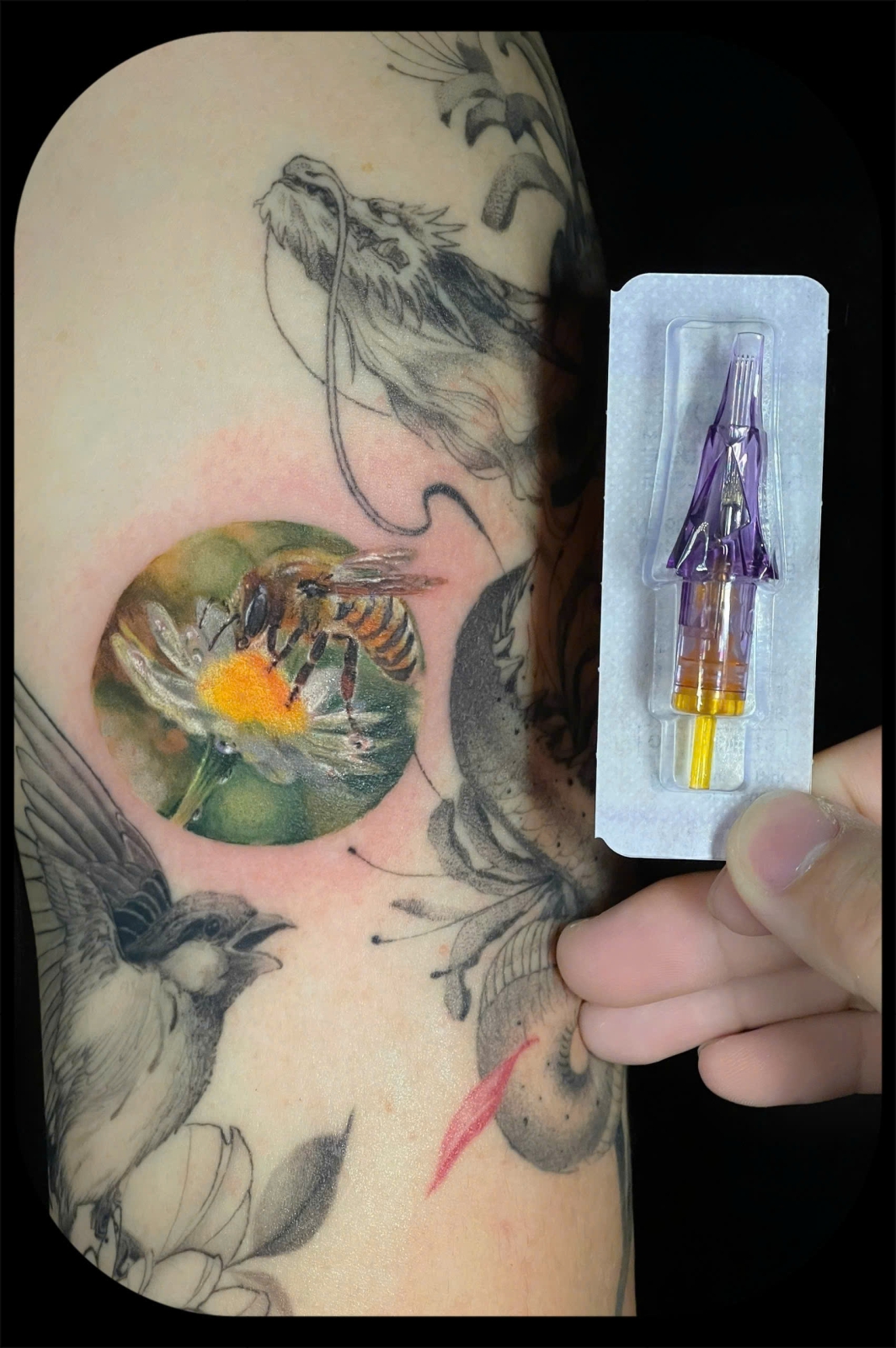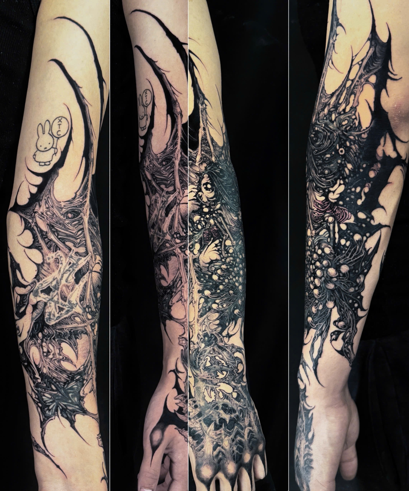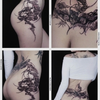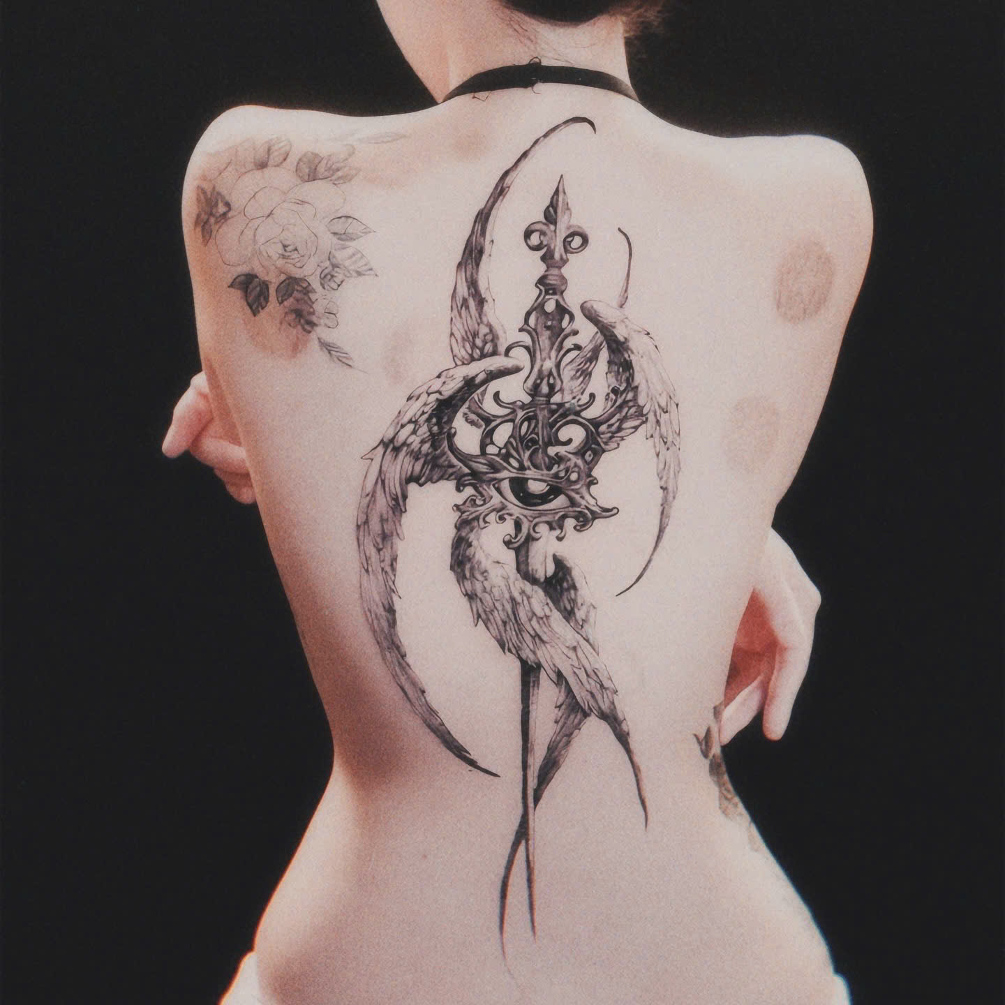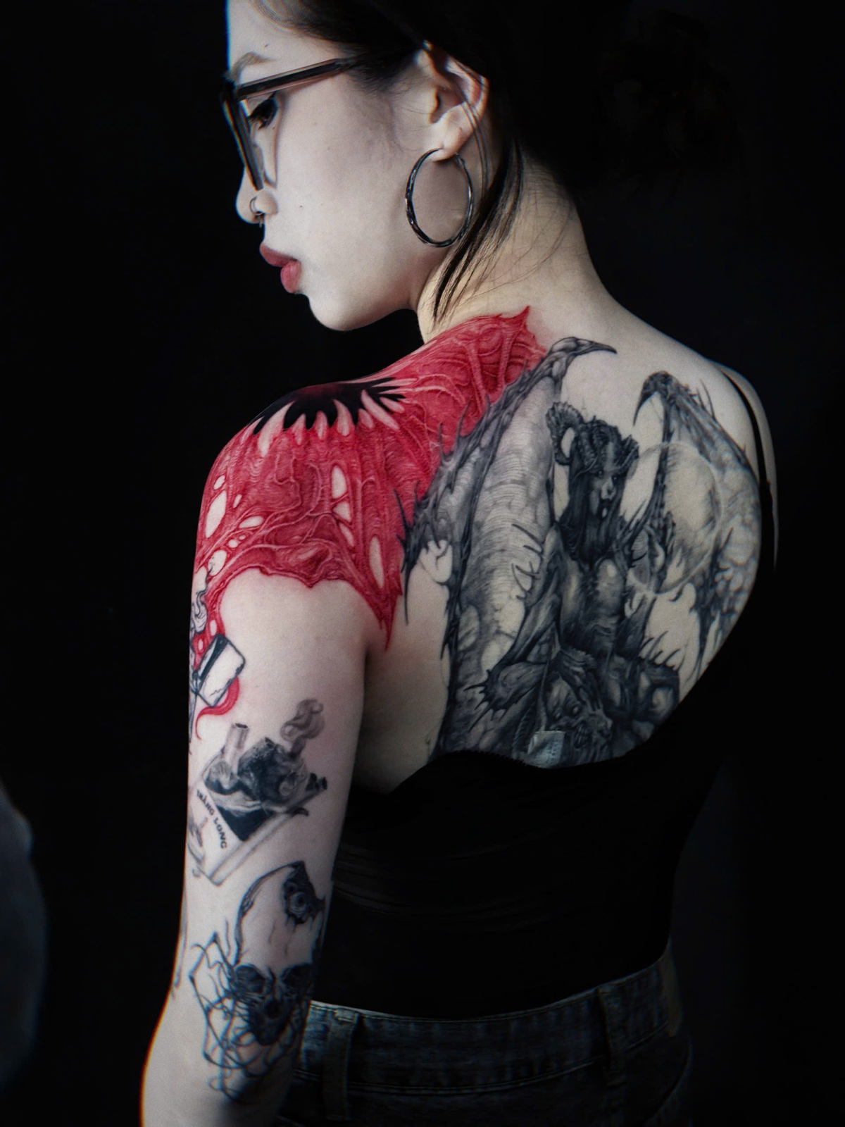 Năng lượng trầm lắng nhưng sắc bén, Hoa bước vào con đường xăm như một kẻ săn bóng tối... bằng ngòi kim. Không mô phỏng, không vay mượn, mọi hình xăm Hoa tạo ra đều xuất phát từ trí tưởng tượng thuần túy, những mảng màu và đường nét được chắt lọc từ góc nhìn riêng của bản thân.