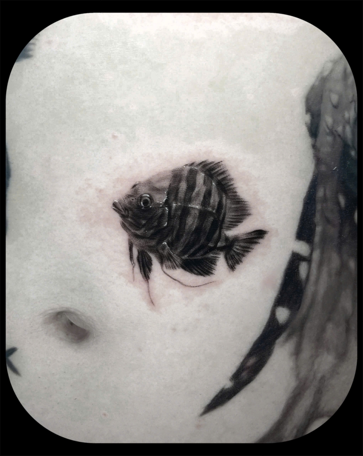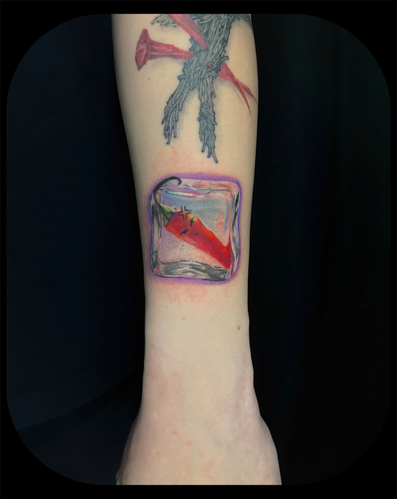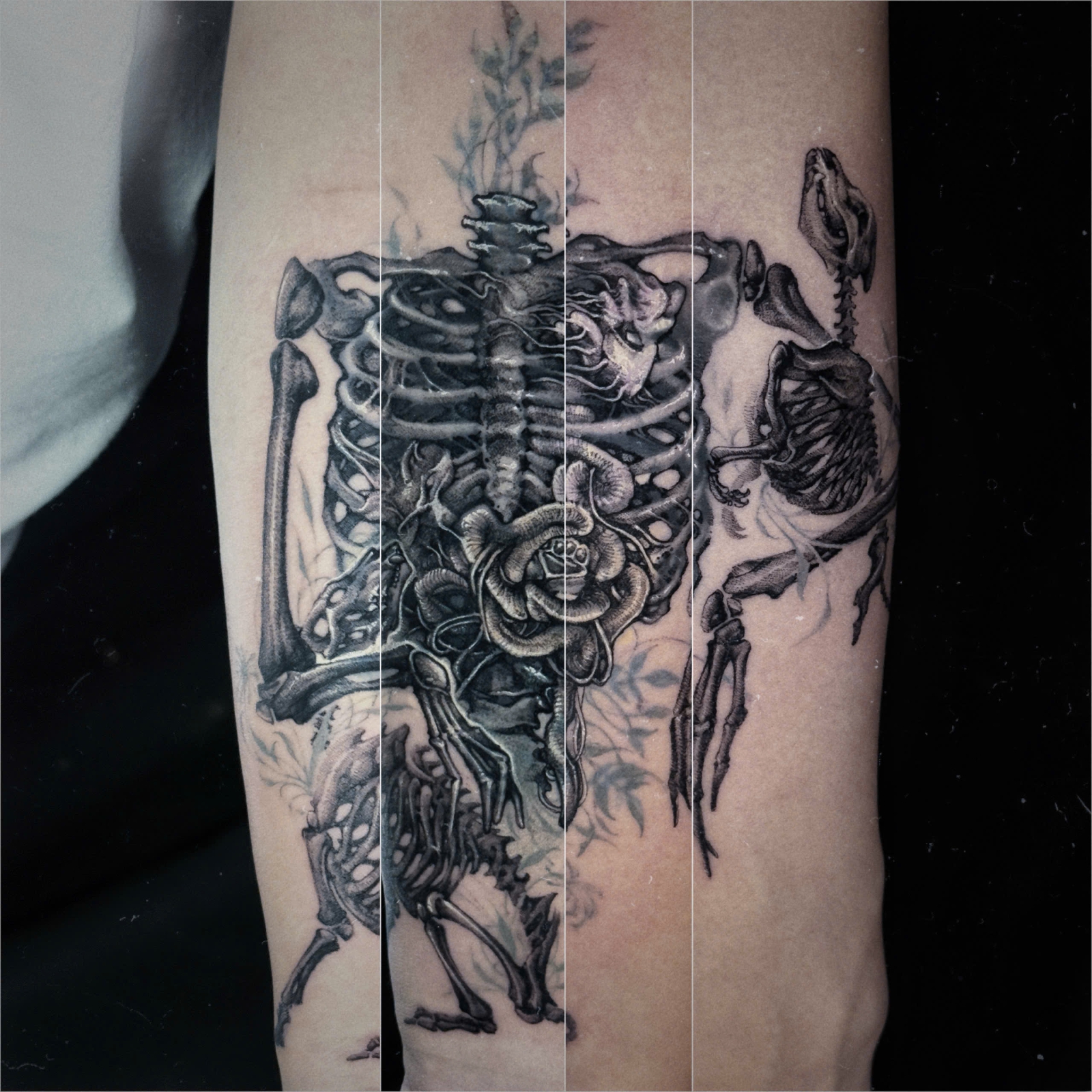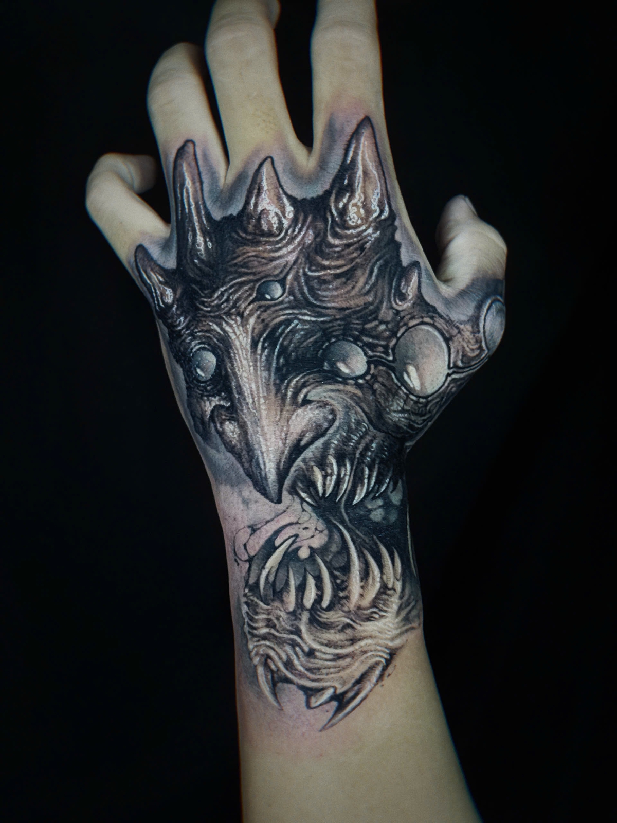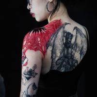 Năng lượng trầm lắng nhưng sắc bén, Hoa bước vào con đường xăm như một kẻ săn bóng tối... bằng ngòi kim. Không mô phỏng, không vay mượn, mọi hình xăm Hoa tạo ra đều xuất phát từ trí tưởng tượng thuần túy, những mảng màu và đường nét được chắt lọc từ góc nhìn riêng của bản thân.