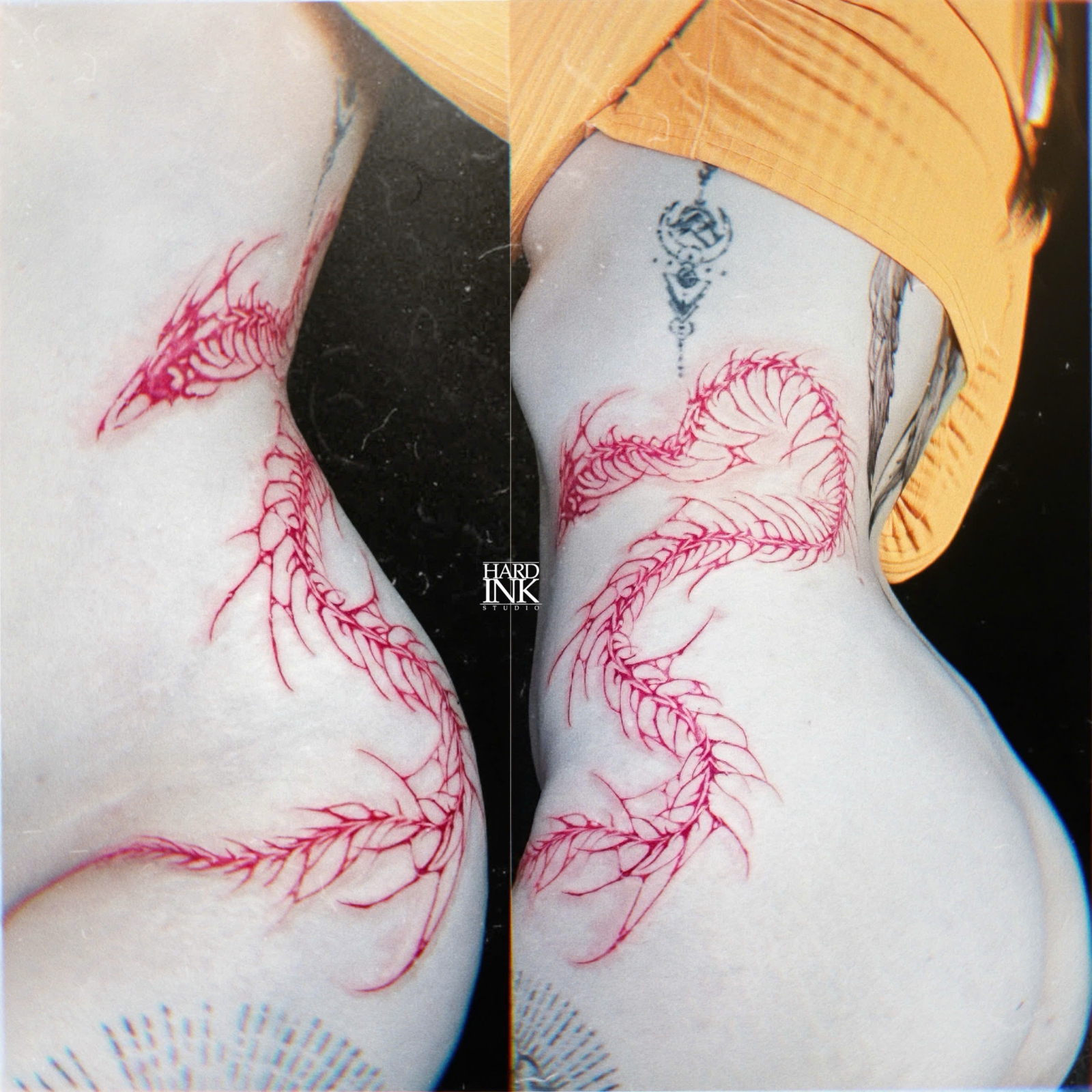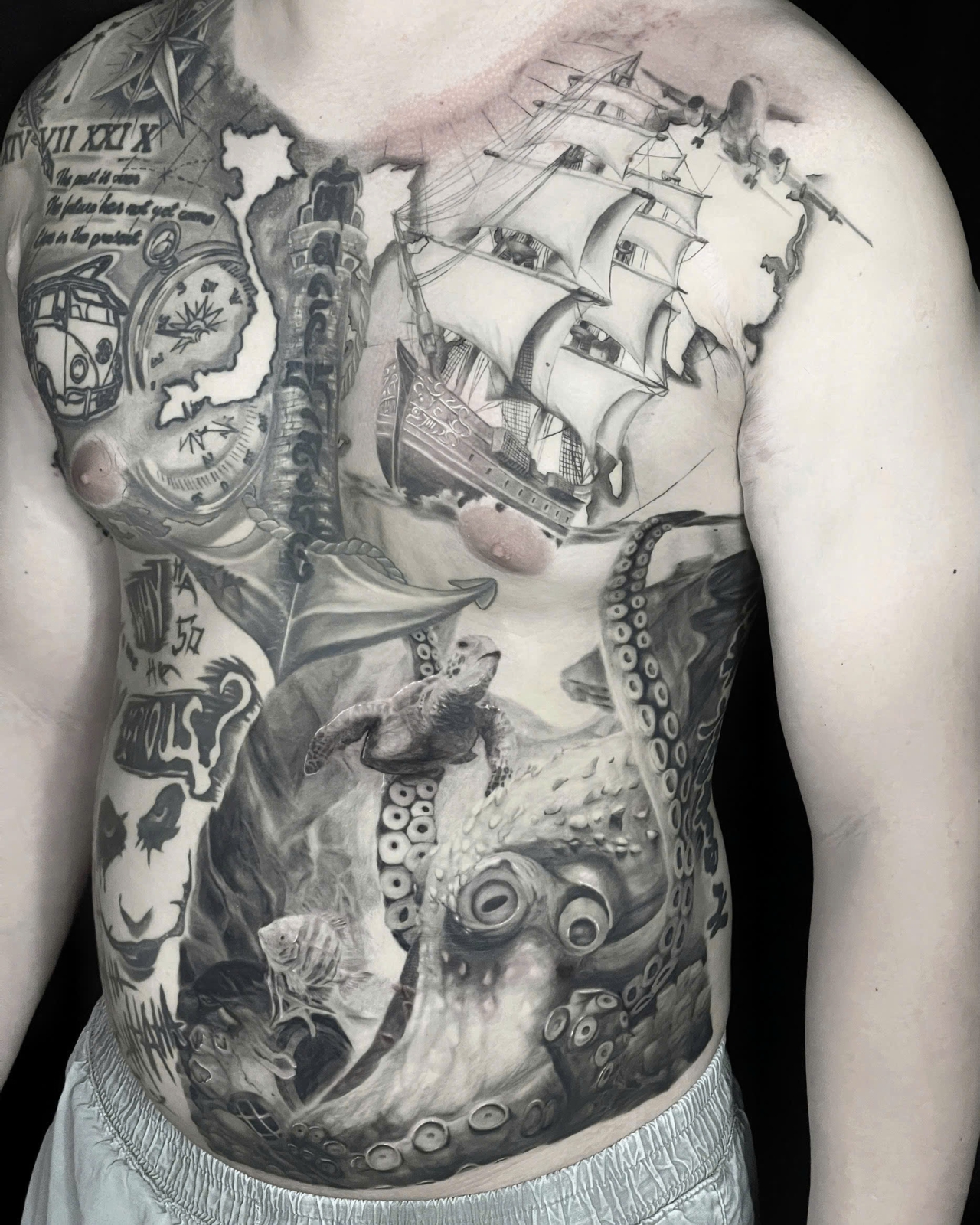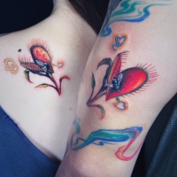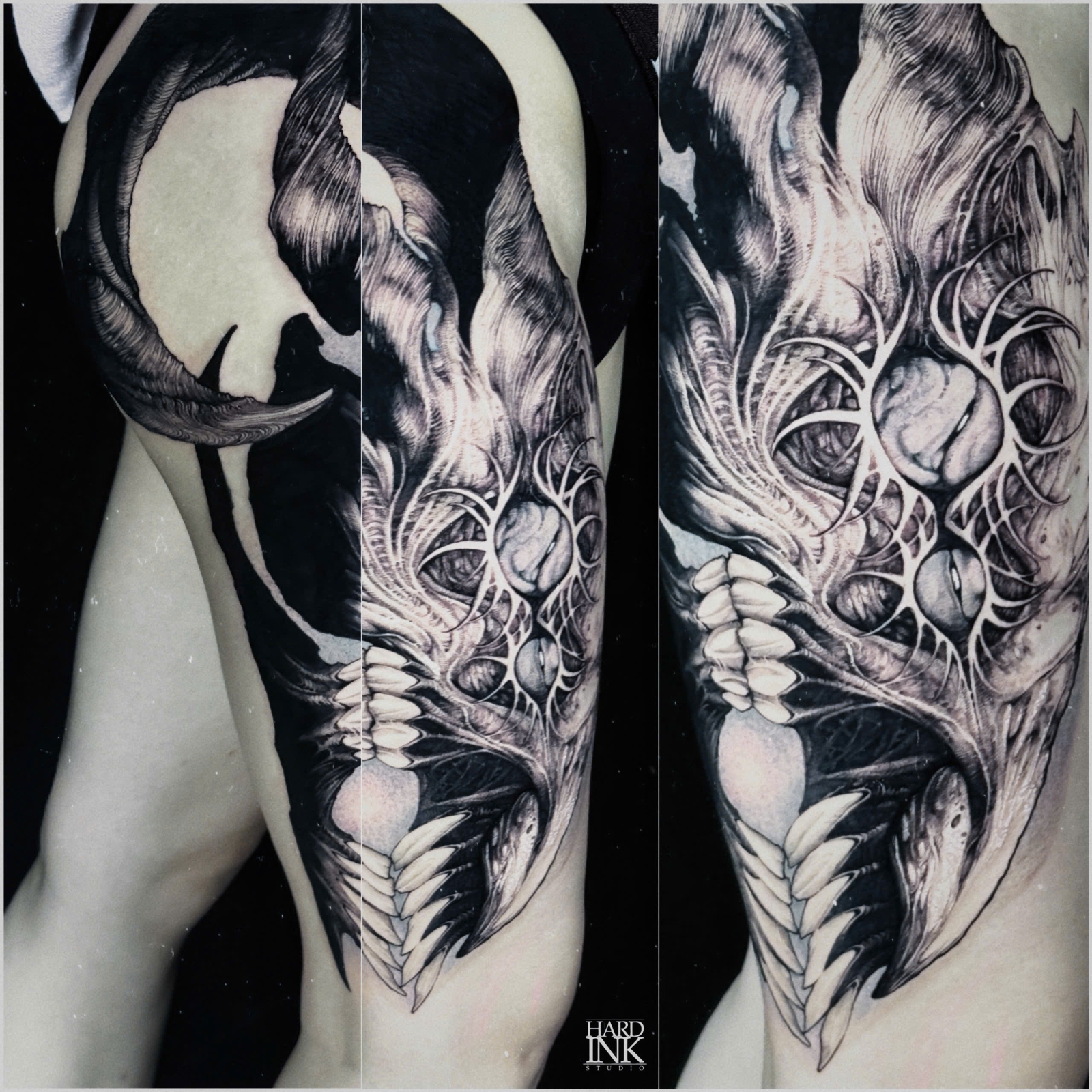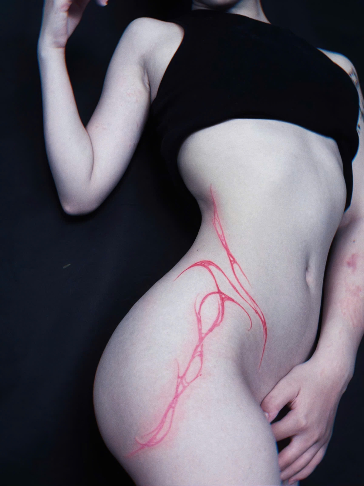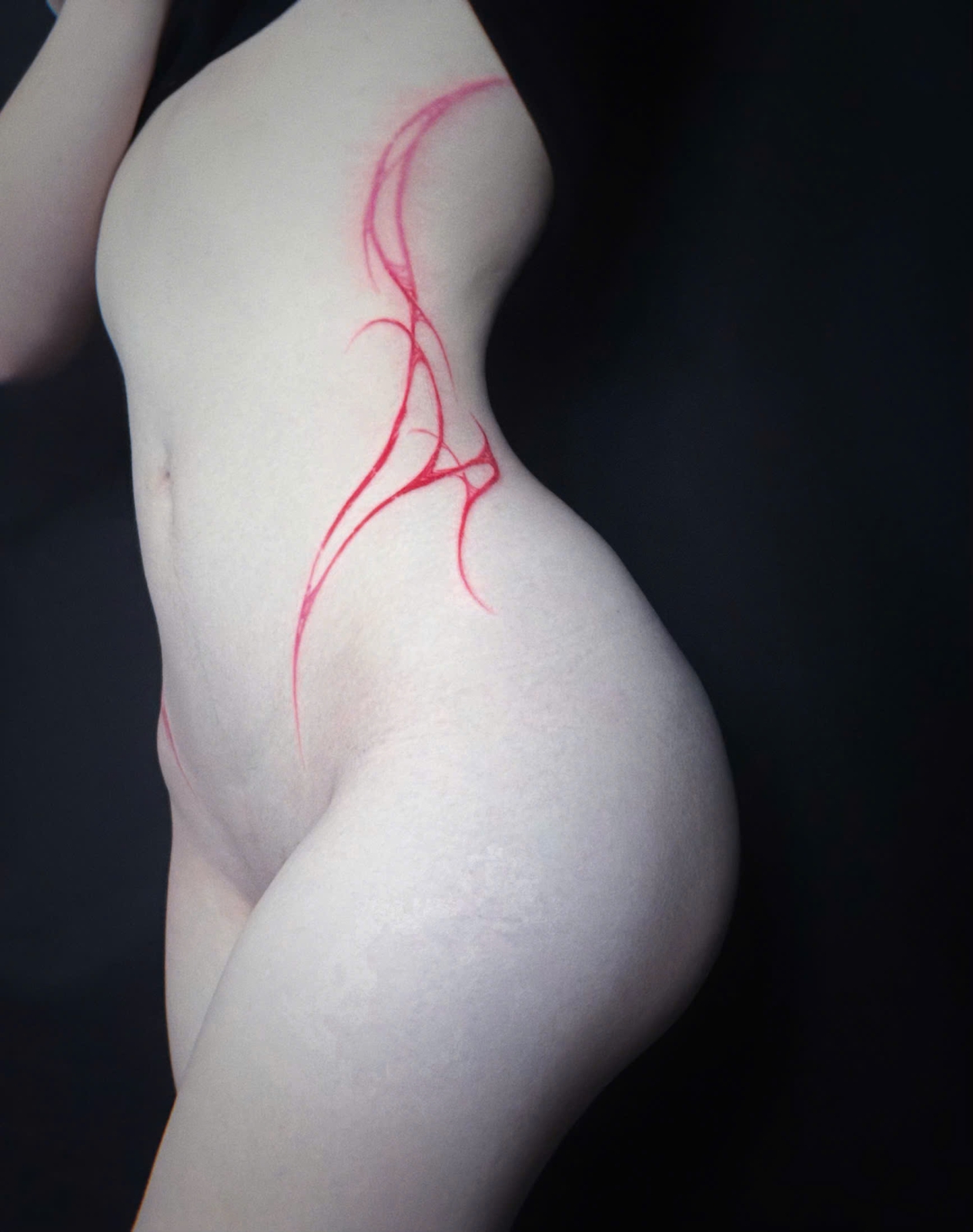 Năng lượng trầm lắng nhưng sắc bén, Hoa bước vào con đường xăm như một kẻ săn bóng tối... bằng ngòi kim. Không mô phỏng, không vay mượn, mọi hình xăm Hoa tạo ra đều xuất phát từ trí tưởng tượng thuần túy, những mảng màu và đường nét được chắt lọc từ góc nhìn riêng của bản thân.