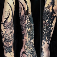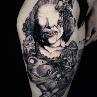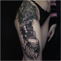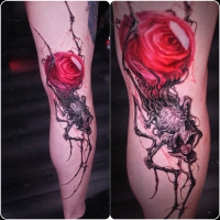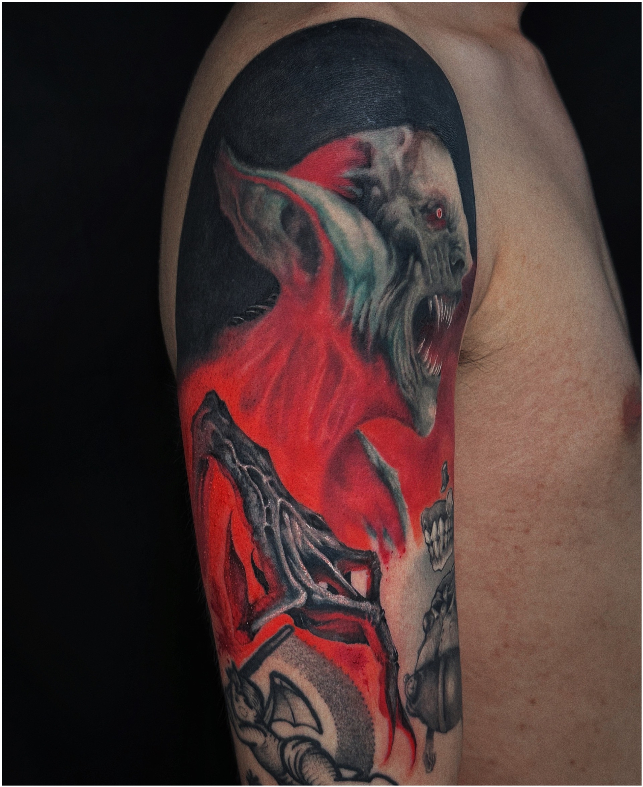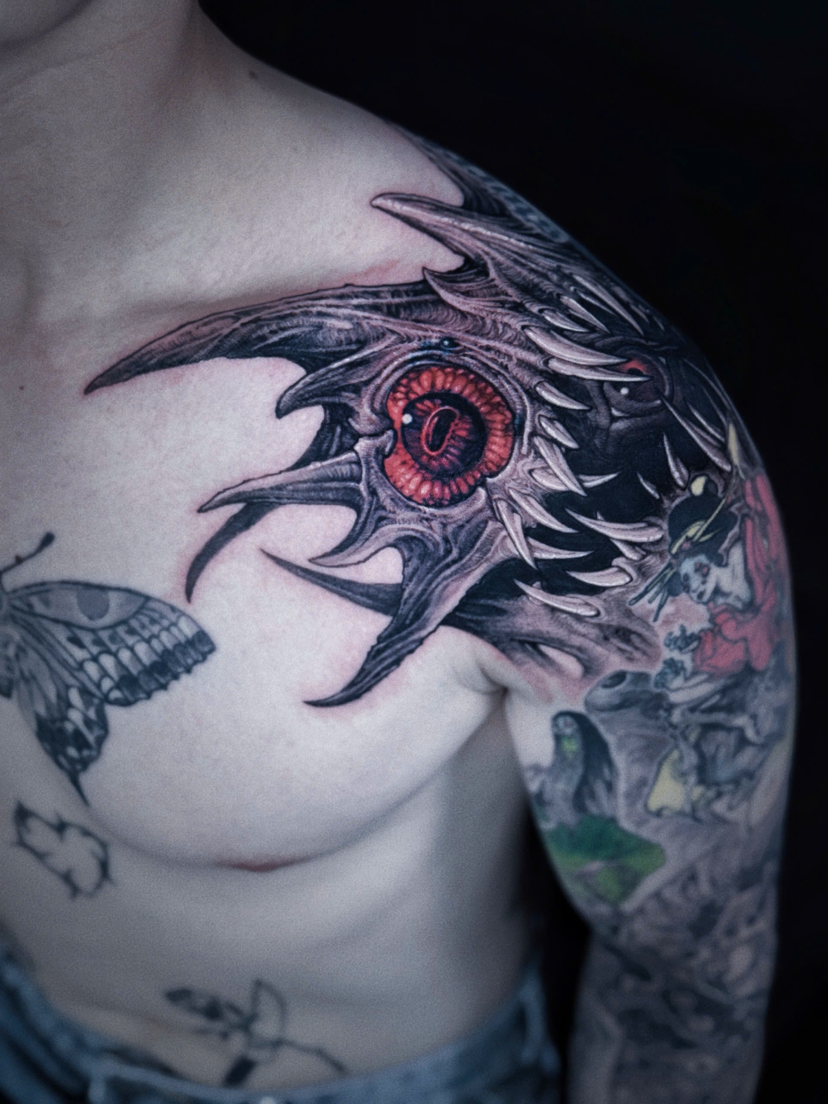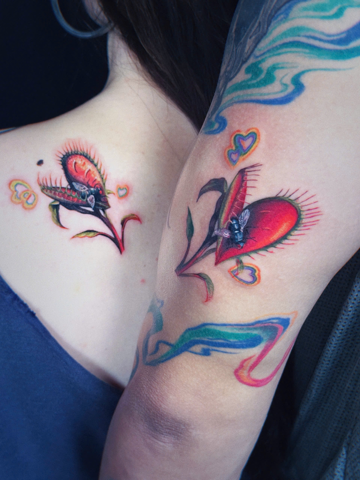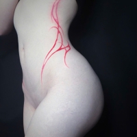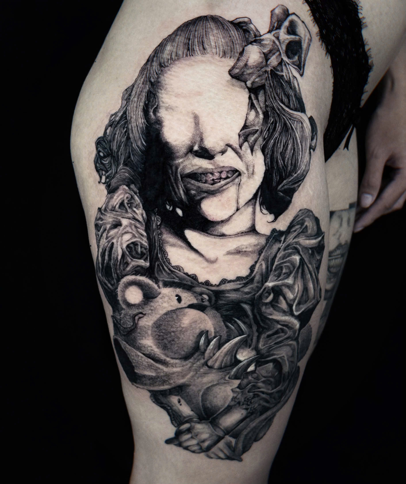 Năng lượng trầm lắng nhưng sắc bén, Hoa bước vào con đường xăm như một kẻ săn bóng tối... bằng ngòi kim. Không mô phỏng, không vay mượn, mọi hình xăm Hoa tạo ra đều xuất phát từ trí tưởng tượng thuần túy, những mảng màu và đường nét được chắt lọc từ góc nhìn riêng của bản thân.